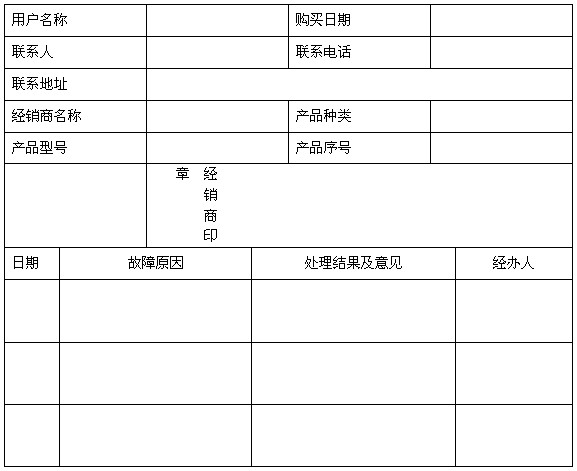 二年質保 尊敬的客戶: 首先感謝您選用《玖容》品牌系列產品,在購買后請您認真閱讀此說明書并妥善保存該產品質量保修卡。 一. 請將此質量保證卡上資料填寫完整,如在經銷商處購買,應有直接經銷商的加印章以保障您的權益。 二. 玖容公司對在中國大陸地區發售的《玖容》氣液增壓缸及氣液增壓器系列產品實行二年免費保障服務。 三. 若經本公司判斷屬下列因素,不屬于免費保修服務范圍里的,本公司將有權收取維修費用: A. 超過玖容提供質保有效期的氣液增壓缸,增壓器 產品; B. 人為操作使用不慎造成傷害; C. 未按產品說明書使用,維護,保管而造成損壞的; D. 用戶擅自或請第三人自行檢修,改裝,變更組件等; E. 本公司產品序列號標簽撕毀或無法辨認,涂改保修卡或產品不符; F. 其他不正常使用造成之問題及故障。 四.技術支持及維修服務: 1. 如您在使用玖容產品的過程中遇到問題,您可以首先查閱說明書尋找答案; 2. 您亦可以登錄玖容中文網站(m.xianoutai.com)技術支持中查詢到相應的技術支持與常見問題排除; 3. 您可以撥打玖容24小時免費技術支持專線,由我們線上工程師為您提供服務; 4. 如果您使用的玖容產品出現硬件故障需要維修,請聯系我司售后部及技術部。 無論透過何種方式尋求技術服務,請務必要明確告知您使用之產品名稱,型號及詳細的故障現象等,以便我司工程師能幫助您更加準確快速地判斷出故障的原因。 用戶填寫資料